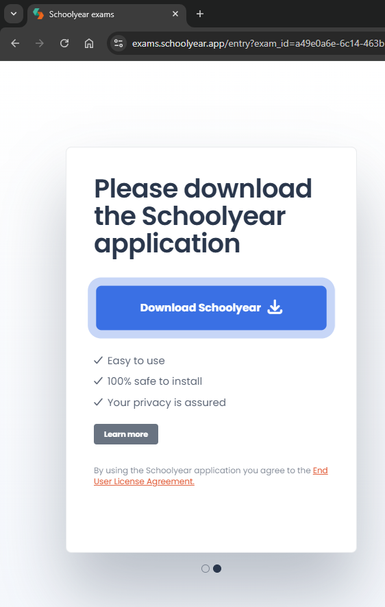 If this popup is ignored/blocked or not visible, Schoolyear will not start automatically after downloading.