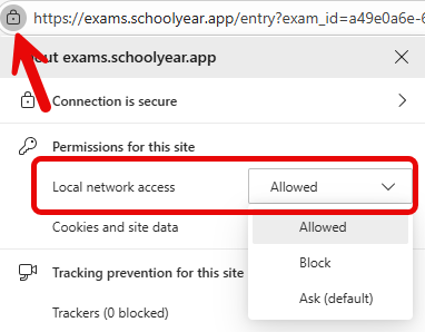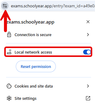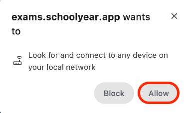 Schoolyear requires local network access to verify that the local installation succeeded. If this check fails, Schoolyear will not start after downloading and you get stuck on the screen like displayed above. In some cases you must explicitly grant local network access via a pop-up.